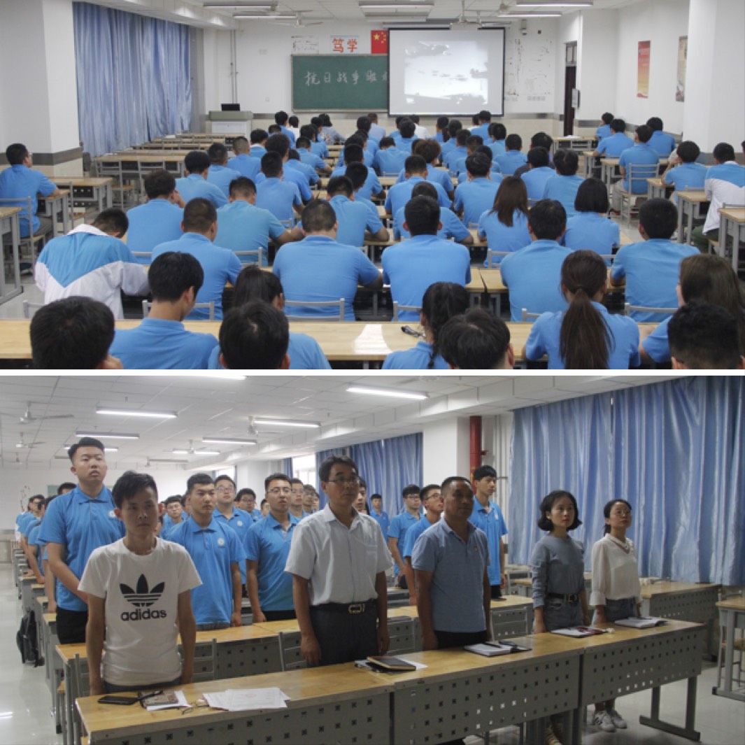 活动最后,全体师生起立观看习近平等向抗战烈士敬献花篮视频,向英烈致敬。