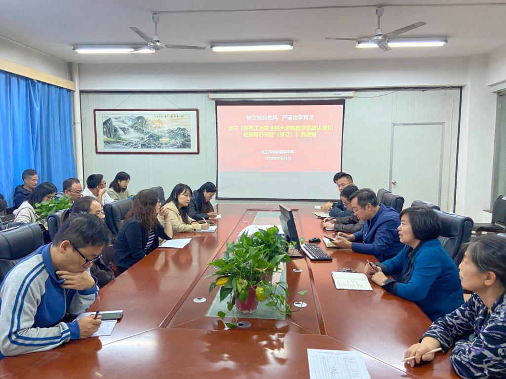 会上,化纺服学院院长贾格维领学并详细解读了《陕西工业职业技术学院教学事故认定和处理暂行规定(修订)》的文件内容及《2020-2021(1)第3周教育教学督导情况通报》。贾格维院长从教学管理、教学教风建设、教学监督以及课堂教学内容等几个方面提出了具体的要求,要求教师做好个人行为规范,提高教学质量管理,增强教学教风意识,加强课堂纪律管理,做好教学督导工作,杜绝教学事故的发生。