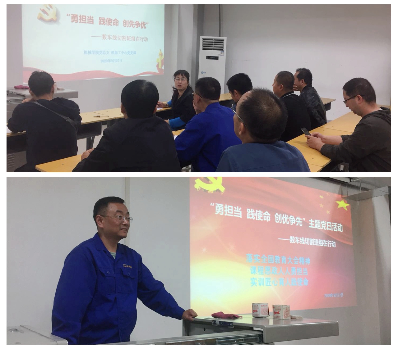 9月27日下午,机械党总支机加工中心党支部开展“勇担当践使命创先争优”主题党日活动,全体党员参加,郭新玲主持。
