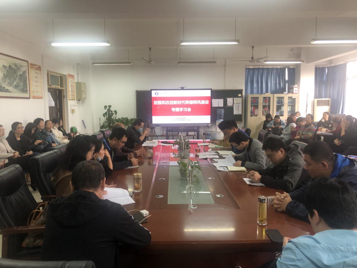 为落实立德树人根本任务,加大师德师风教育,提高教师队伍整体水平,10月21下午,电气工程学院在行知A楼502开展加强和改进新时代师德师风建设专题学习会,电气学院党总支书记杜云、院长夏东盛以及全体教师参加此次学习会,会议由电气学院党支书记杜云主持。