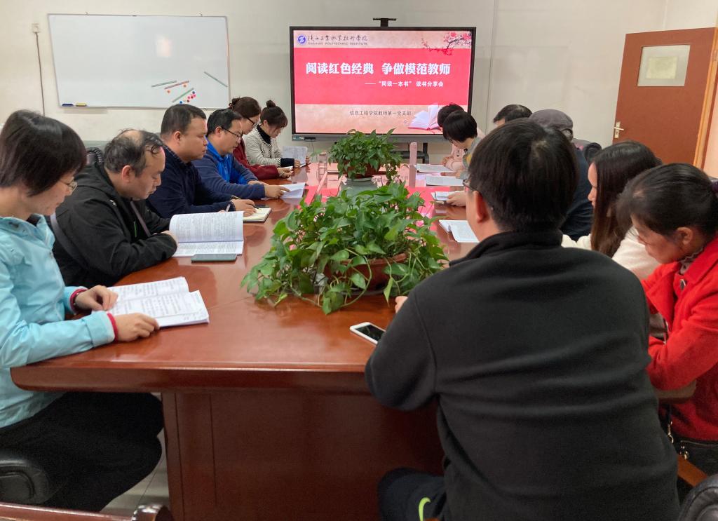 10月23日下午,信息工程学院教师第一党支部在崇文楼A806会议室开展“同读一本书”主题党日活动。会议由支部书记宋承继主持,支部全体教师党员参加了会议。