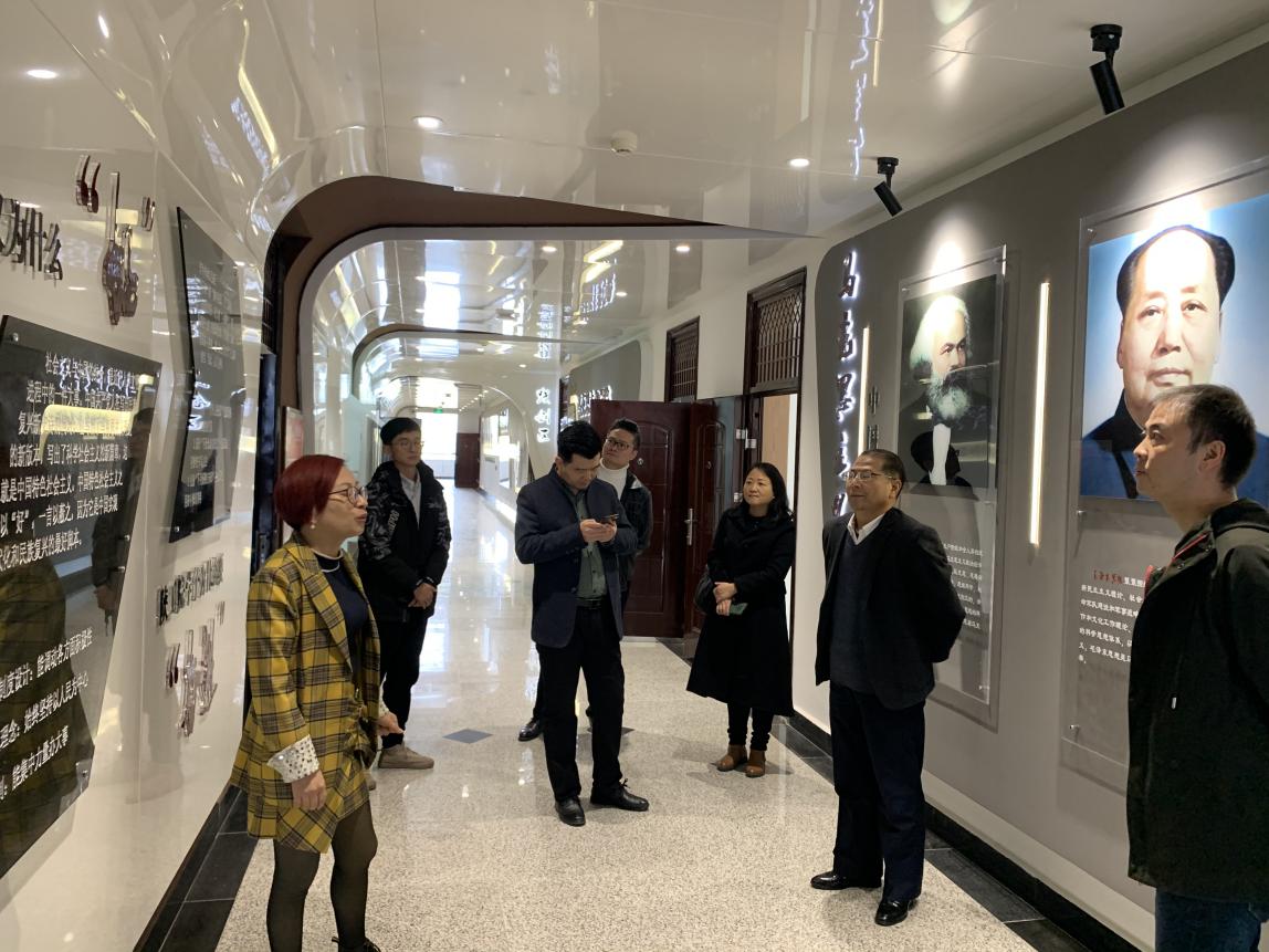 王金辉院长首先对张晓林院长一行的到来表示热烈欢迎。随后张晓林院长一行参观了我院马克思主义学院新建成的智慧思政实训基地——“学马研习·践创空间”,王金辉院长就智慧思政实训基地的整体建设思路、功能定位及技术支持等情况详细作了介绍,并就提出的问题进行了解答。接下来,双方就思政课实践教学情况进行了交流,王院长就我院“校内研学+VR/AR体验+工坊创练”的三维融创式思政课实践教学模式、“1+4”校园线轴实践教学情况作了介绍,马克思主义学院办公室主任陈晨就马院内部建设情况作了介绍。随后双方就思政课实践教学中存在的有关问题进行了交流。