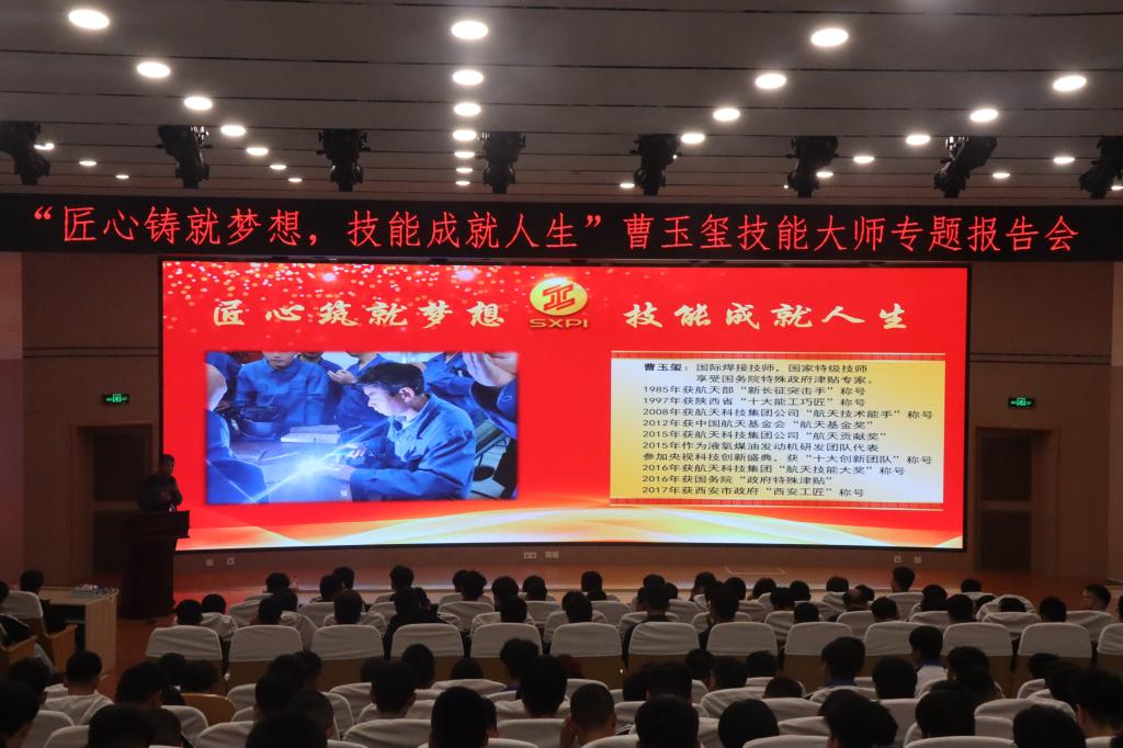 11月12日下午,值此我院建校70周年之际,特邀请曹玉玺技能大师在学术会堂召开“匠心筑就梦想,技能成就人生”专题报告会,会议由就业指导处处长卢文澈主持,400余名师生参会。