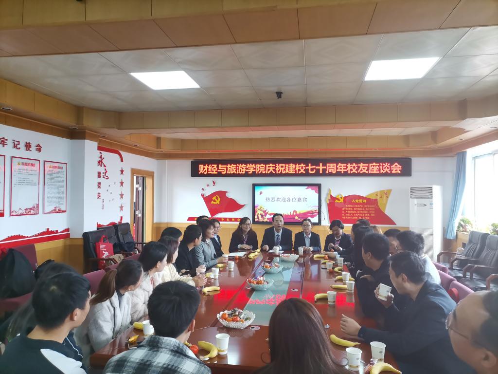 2020年11月15日,陕西工院迎来了建校70周年的生日,在这特别的日子里,财经与旅游学院特别邀请了27名校友和两家企业代表参加了我校举办的建校70周年庆祝大会。会后,财经与旅游学院在格物楼408举办了校友座谈会,会议由党总支书记孙继龙主持,院长吴姗娜、副院长赵丽娟,学工办主任、教研室主任、原任班主任一同参加。
