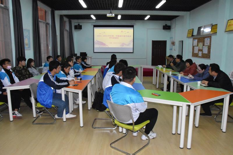11月26日下午,我院2020-2021学年第一学期学生教育管理期中检查座谈会在格物楼大学生思想政治教育温馨港召开,学工部(处)长郝军、副处长耿丽、学生处各科长,以及来自十个二级学院的学生代表40多人参加了座谈会,会议由教育管理科科长刘冽主持。