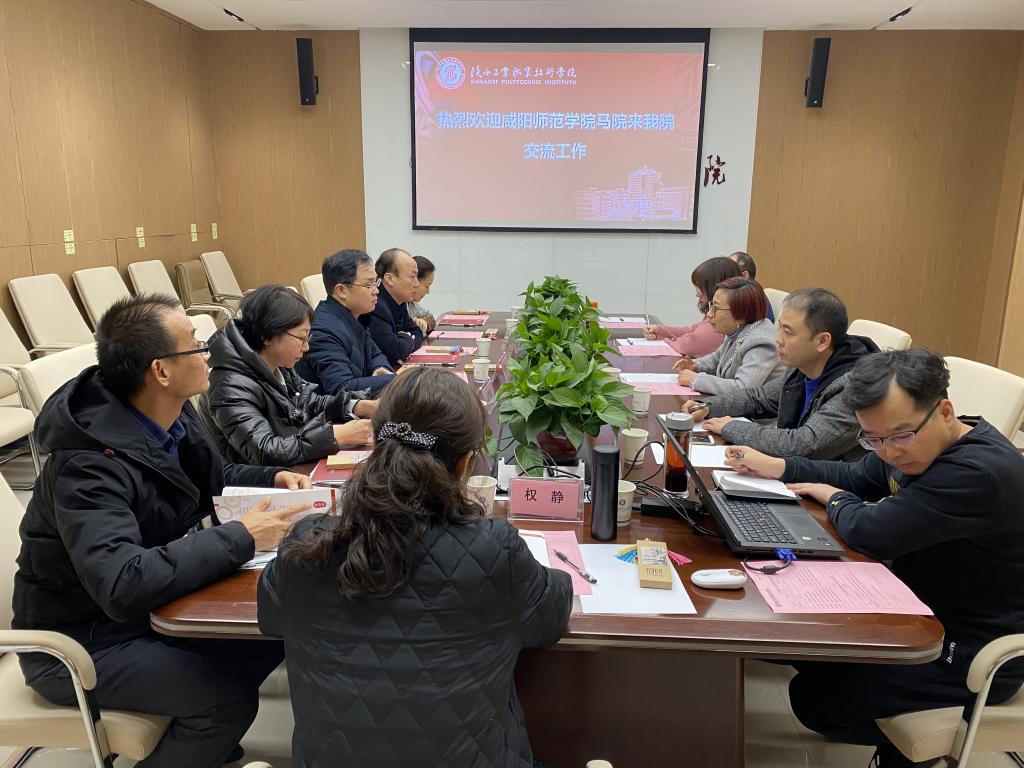 12月1日下午,咸阳师范学院马克思主义学院党委书记王革慧、院长曹勇等一行8人来我校马克思主义学院交流工作,我校马院院长王金辉、副院长王辉、办公室主任陈晨及教研室主任王永利、程军栋等参加了交流座谈。