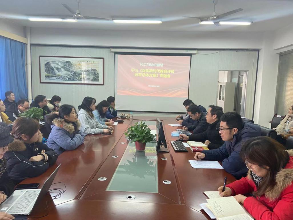 12月14日,化纺服学院在崇文楼811召开学习《深化新时代教育评价改革总体方案》专题会,专题会由化纺服学院党总支书记王化冰主持,学院全体教职工参加了此次学习会。