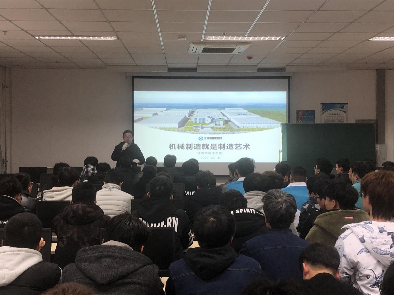 12月18日下午,由校企合作处主办,机械工程学院承办的文化大讲堂在精益楼2014开讲。北京精雕科技集团有限公司西安分公司总经理助理王帅受邀为大家进行了题为《机械制造就是制造艺术》的专题报告,报告会由机械学院学工办主任何瑾主持,2020级100余名师生参加了讲座。
