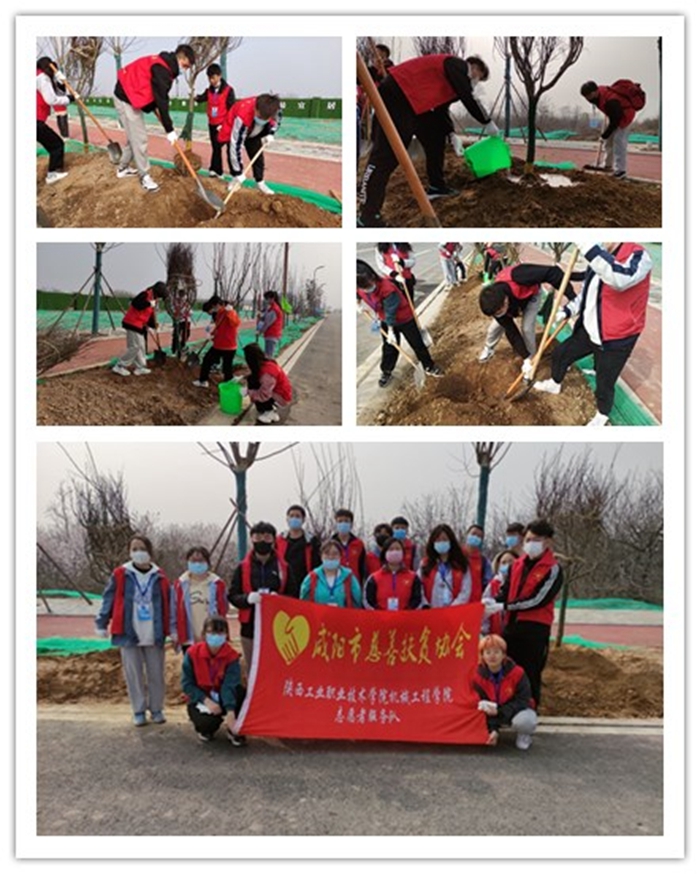 大地回春,新绿初绽,植树添绿正当时。3月13日,机械工程学院志愿者服务队与咸阳市慈善扶贫协会公益志愿者分会合作,以“植树助力创森,共建绿色家园”为主题开展植树实践活动。此次活动是机械学院学雷锋志愿者服务月活动之一。
