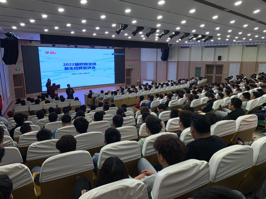 3月22日晚,欧姆龙班新生招聘宣讲会在学术会堂举行,本次宣讲会由电气工程学院承办。出席本次宣讲会的有欧姆龙(中国)有限公司品质监察部部长兼企划部部长刘少攀先生、企划部企划主管陈来女士、企划专员郑茵洁女士、欧姆龙(中国)有限公司深圳分公司成本革新部部长付凡先生,电气学院全体辅导员、欧姆龙驻校代表顾健林老师以及机械学院、航空学院、电气学院、材料学院和汽车学院19级学生300余名。宣讲会由欧姆龙公司陈来主持。