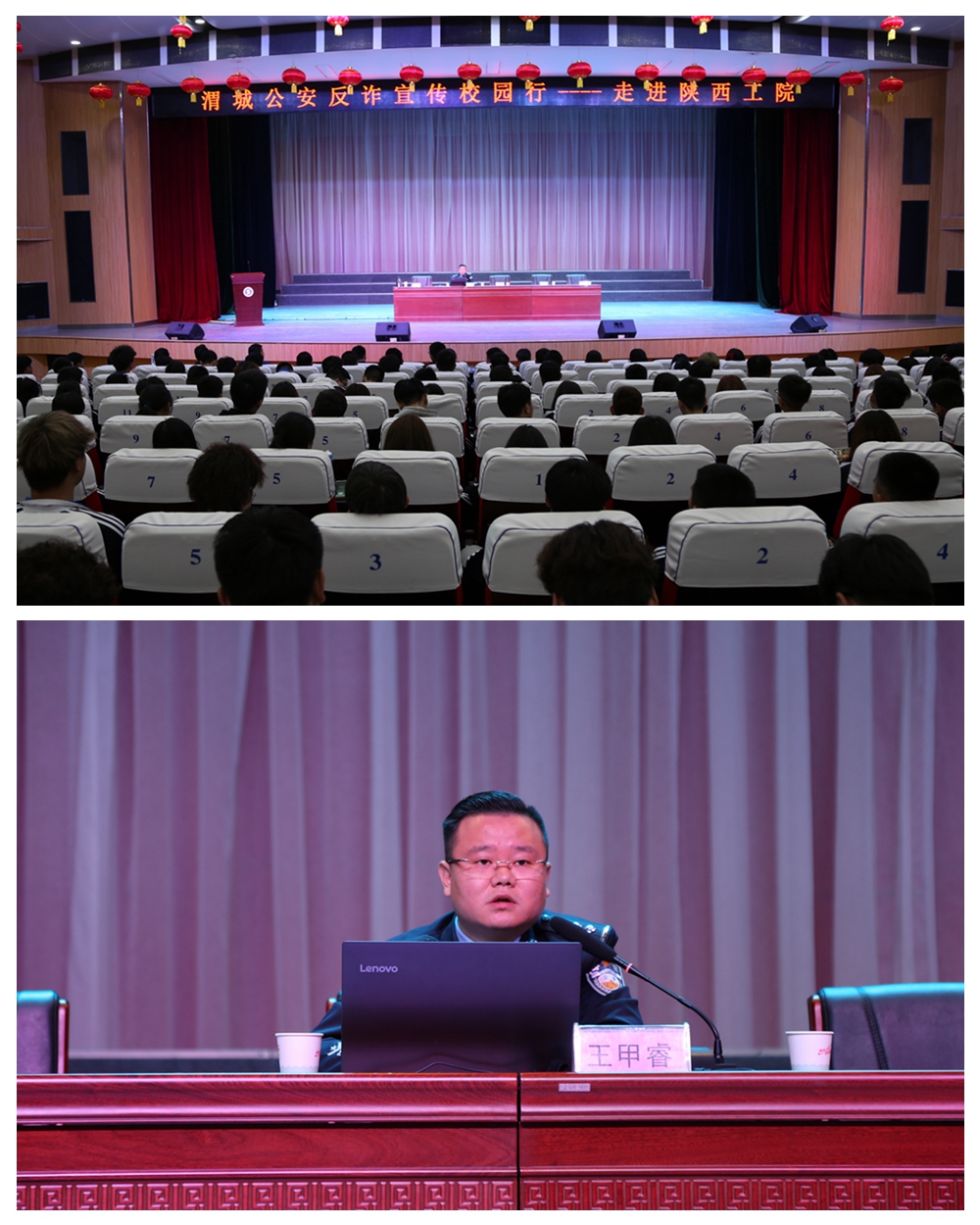 为强化学生网络安全教育,增强学生预防电信诈骗能力。3月24日下午,学生处、保卫处邀请渭城公安分局文汇路派出所胡杭副所长,赵李延、王甲睿警官等一行4人来我院进行反诈宣传,王甲睿为我院师生作了题为《共同防范电信网络诈骗犯罪》的安全教育报告会。学生处、保卫处及二级学院辅导员、学生代表共计1000余人参加了报告会,报告会由保卫处治安科科长王海虎主持。