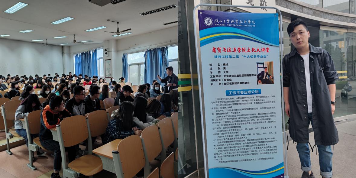 据悉,鹿斌于2012年至2015年进入我校商贸与流通学院学习,2014年末进入北京新荣记餐饮管理有限公司实习,2016年被任命为北京金融街荣小馆店长,2017年调至北京新荣记餐饮管理有限公司担任招聘经理,2020年起担任新荣记集团首席招聘官,统筹集团人才招聘及人才培养等工作,在新荣记任职期间,鹿斌曾多次获得集团优秀员工、优秀管理者等称号。