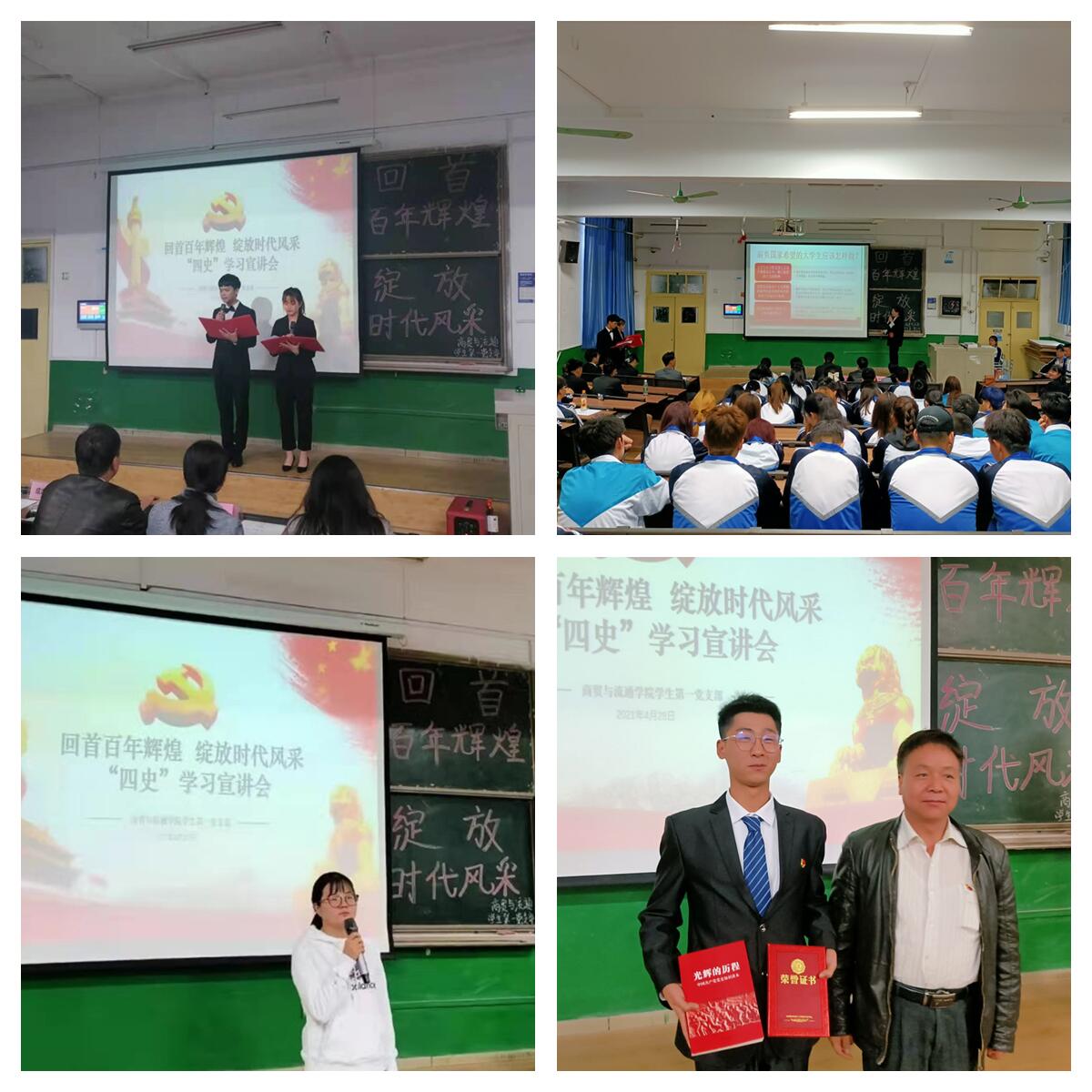 在庆祝中国共产党成立100周年的重大时刻,在“两个一百年”奋斗目标历史交汇的关键节点,为教育和引导青年大学生了解党的奋斗历程和伟大成就,继承和发扬党的光荣传统和优良作风,在党的实践创造和历史经验中启迪智慧、砥砺品格,商贸与流通学院学生第一党支部于4月28日下午在崇文北楼阶梯四教室开展“回首百年辉煌,绽放时代风采”理论宣讲比赛。商贸与流通学院全体辅导员担任评委,第58、59期入党积极分子观看了比赛。