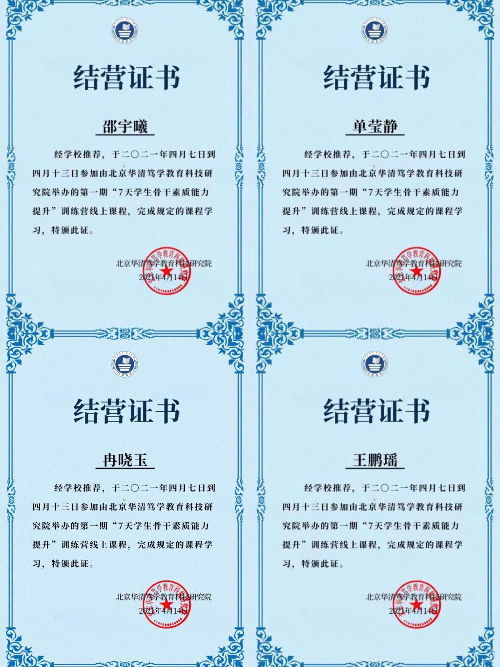 为进一步增强我院学生干部的综合素质,提高各级学生干部的思想素质和工作水平,培养学生干部的责任意识、大局意识、团队意识,充分发挥学生干部在学生管理工作中的作用,4月7日至4月13日,我院组织2019级、2020级部分学生干部参加由北京华清笃学教育科技研究院举办的第一期“7天学生骨干素质能力提升”线上训练营。