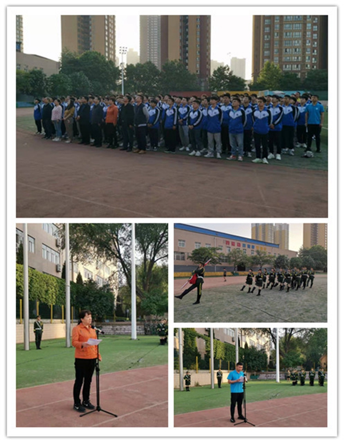 升旗仪式开始后,英姿飒爽的国旗护卫队护送鲜艳的五星红旗入场,伴随着庄严的《义勇军进行曲》,五星红旗冉冉升起,全体师生肃立凝视,高唱国歌。