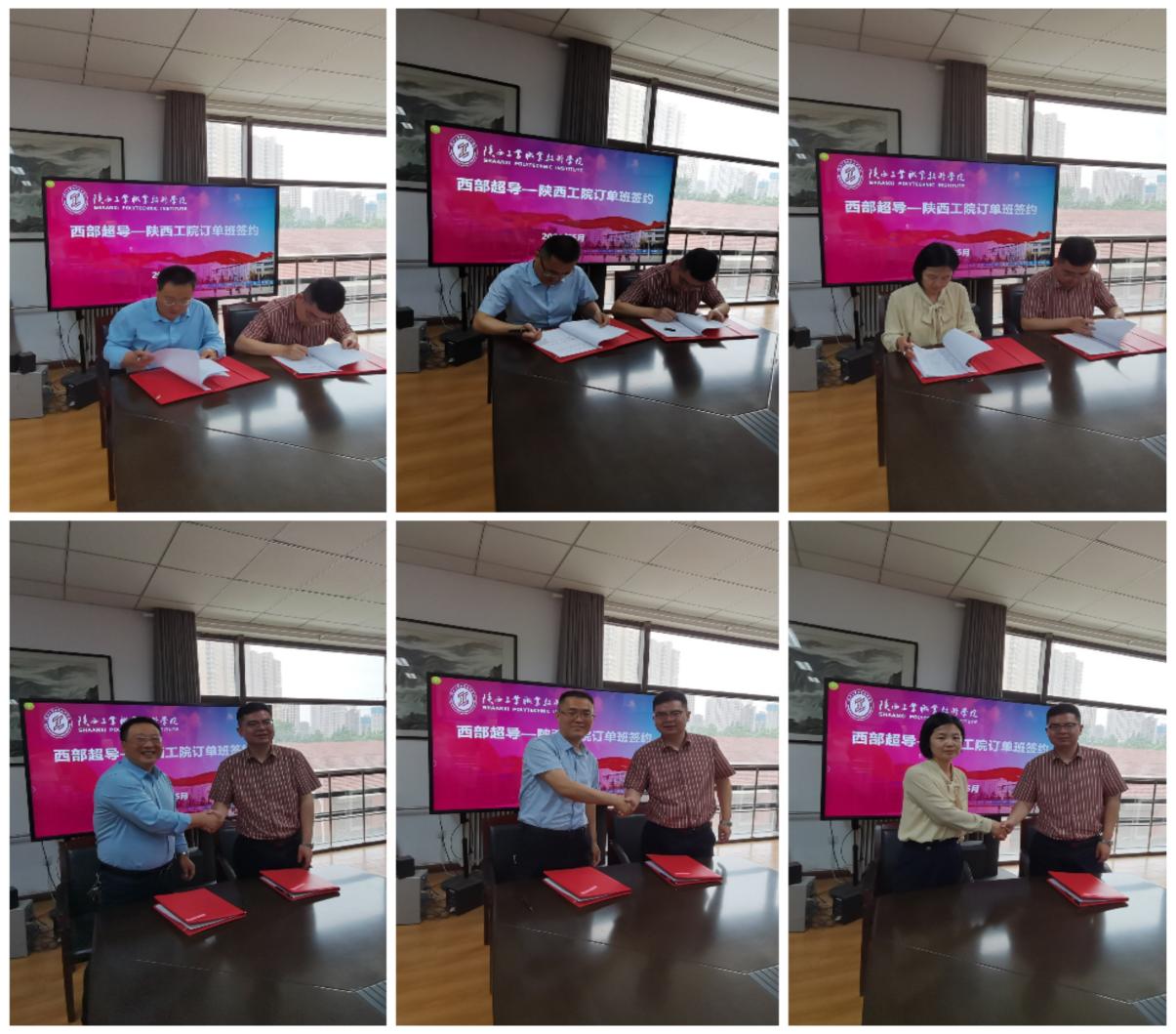 会议开始,刘其兵副处长对西部超导材料科技股份有限公司一行的到来表示热烈欢迎,对该企业长期以来对我院的支持和帮助表示感谢。随后,材料工程学院、航空工程学院、机械工程学院分别与西部超导材料科技股份有限公司签订了订单人才培养协议,希望进一步加深校企合作,通过产学研一体化使企业与校方实现共赢。此次订单班的成立,提高了材料工程学院、航空工程学院及机械工程学院专业人才培养的质量,拓宽了学生就业的渠道,提升了学生实践技能,实现了校企合作的意义。