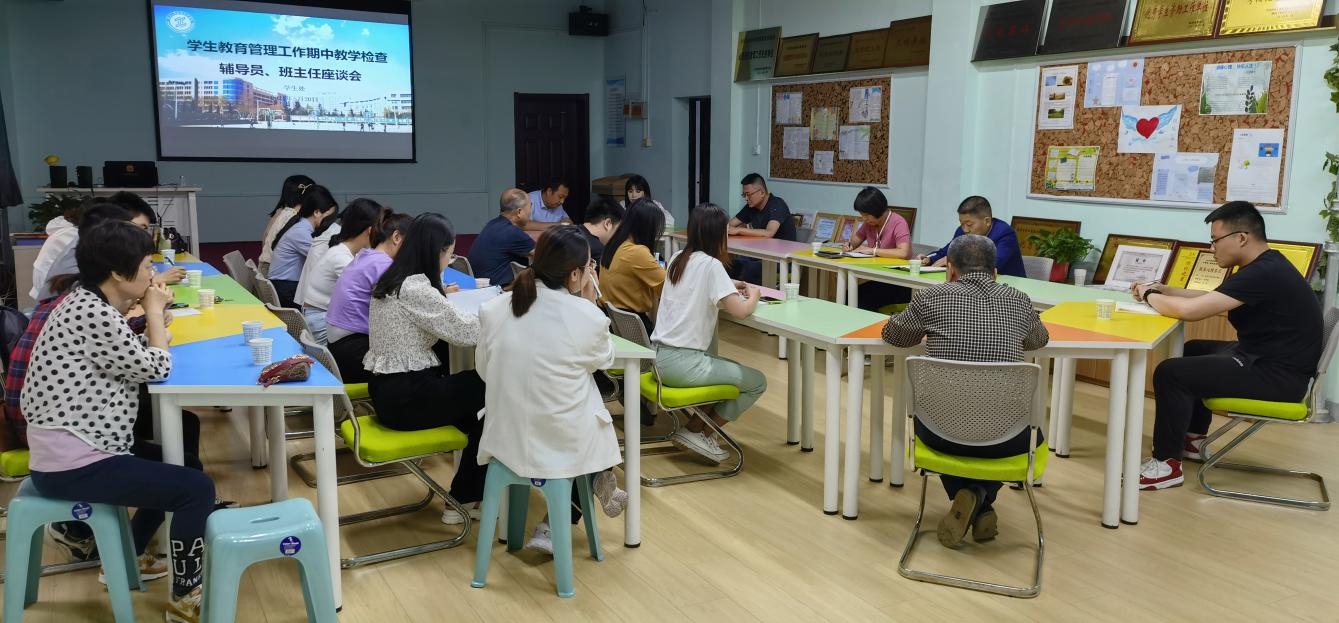 5月20日下午,学生处在心理团辅室召开2020—2021学年第二学期学生教育管理工作期中教学检查辅导员、班主任座谈会。学生处副处长耿丽、学生处副处长杨修国、教育管理科科长刘冽、公寓管理中心主任王国柱、学生处相关人员及10个二级学院20余名辅导员及班主任代表参加了此次座谈会,会议由学生处副处长耿丽主持。