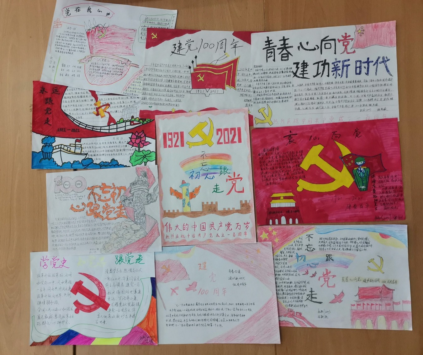 本次党日活动以查阅一段文献史料为基石,以聆听一个历史故事为基点,以红色历史微故事分享为主线,以绘画设计为主要展现方式致敬中国共产党成立100周年。在活动中,学生党员和积极分子们自己动手,通过查询相关党史文献,聆听相关历史故事,了解中国共产党诞生、发展、壮大的艰难历程,通过手工绘画了“红色历史故事”,在绘画中使学生党员和积极分子明确没有“七一”,就没有“八一”、“十一”,就没有如今幸福美好的生活,从而牢记党的奋斗历史,牢记无数仁人志士抛头颅洒热血换来的美好生活,学党史、感党恩、跟党走,以增强爱党爱国之情,向建党100周年献礼。