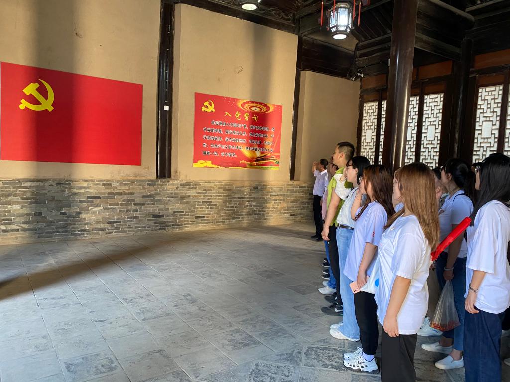 在安吴青年训练班纪念馆讲解员带领下参观了各个场馆,通过一张张鲜活的历史照片和载满了历史斑驳的陈列品,大家全面了解了这所在抗战时期为抗日战争全面胜利培养大量人才的青年干部学校的光辉历程。在青训班教室全体党员同志面向党旗,重温入党誓词。