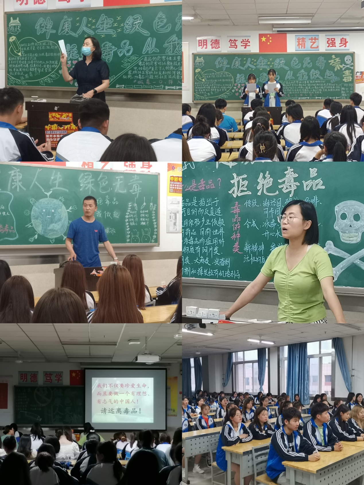 活动中,班主任通过视频、PPT等形式向学生介绍了毒品的概念、特征等方面的知识。通过典型案例,使学生们认识到了毒品的种类和危害、毒品违法犯罪及其处罚、远离毒品的方法与技能,同时增强了学生拒毒、防毒、守法的意识,提高了自觉抵制毒品的能力。