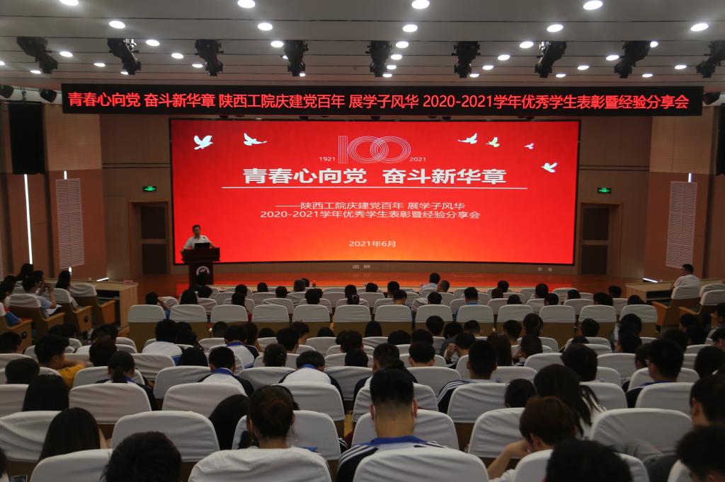 为向建党100周年献礼,充分展示我校2020-2021学年育人成效,6月1日下午,我校在学术会堂举办“青春心向党奋斗新华章——陕西工院庆建党百年展学子风华”2020-2021学年优秀学生表彰暨经验分享会,党委书记惠朝阳、党委副书记贺天柱、党委副书记田昊、二级学院党总支书记、学工办主任、全体辅导员和受表彰学生代表共计400余人参加了分享会。