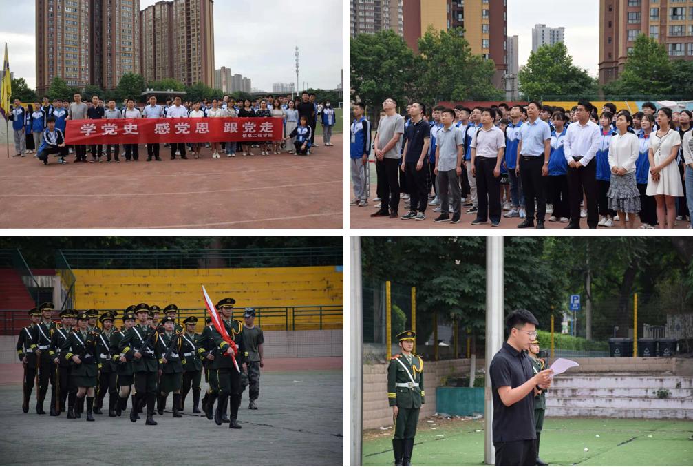 为引导学生学史明理、学史增信、学史明德、学史力行,激发学生的学史热情。6月7日,信息工程学院在操场开展以“学党史、感党恩、跟党走”为主题的“国旗下的成长”主题教育活动。校团委书记赵双军、信息学院全体辅导员、学生干部代表以及部分大一新生,共计100余人参加了本次活动,活动由辅导员李路主持。