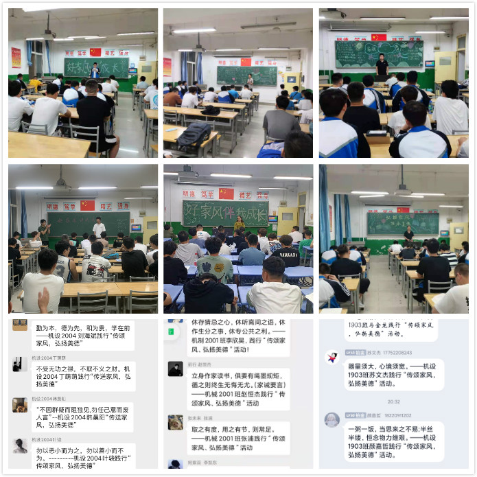 为进一步践行社会主义核心价值观,弘扬家庭传统美德,传承良好家训家风,传递社会正能量,推动学校家风牵手校风,共扬中华美德。6月14日晚,机械工程学院组织2019、2020级共37个班召开“好家风伴我成长”主题班会,班会由各班班主任主持。