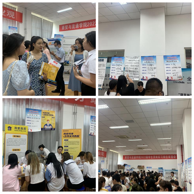 7月8日下午,商贸与流通学院在精艺楼1003举办了2022届学生顶岗实习岗位双选会。我院2022届毕业生有近1200人,当日来访企业有39家,涵盖了销售、管理、仓储、客服、运营、设计等多种岗位,与我院所开设的电子商务、物流管理、房地产经营与管理、市场营销、连锁经营与管理等专业高度对口,此次双选会受到了同学们的交口称赞。