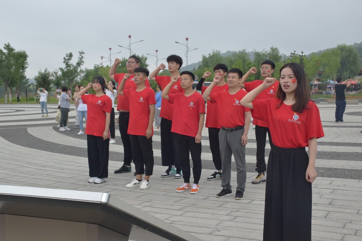 实践团成员在党徽广场重温入党誓词