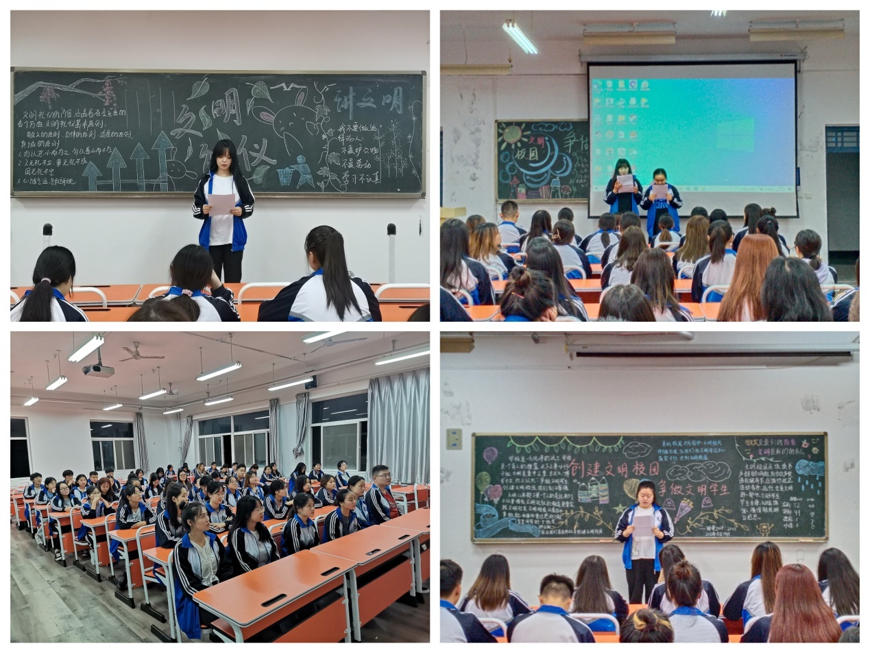 为推进文明校园创建,激发学生的尊师爱校之情,倡导健康文明的校园行为和校园文化,营造奋发进取的学习氛围和生活环境,展现我校学子良好的精神风貌,财经与旅游学院积极响应学校号召,于2021年8月31日晚自习召开主题班会。