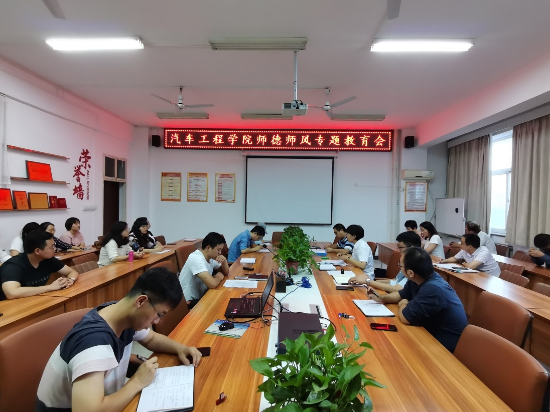 “师者,人之模范也”,教师的职业特性决定了教师必须是道德高尚的人群。合格的老师首先应该是道德上的合格者,好老师首先应该是以德施教、以德立身的楷模。为进一步提升教师职业道德素养,落实“立德树人”根本任务,9月8日,汽车工程学院在崇文楼5楼汽车学院会议室召开师德师风专题教育会,汽车工程学院全体教职工参会。会议由汽车工程学院党总支书记高亚宁主持。