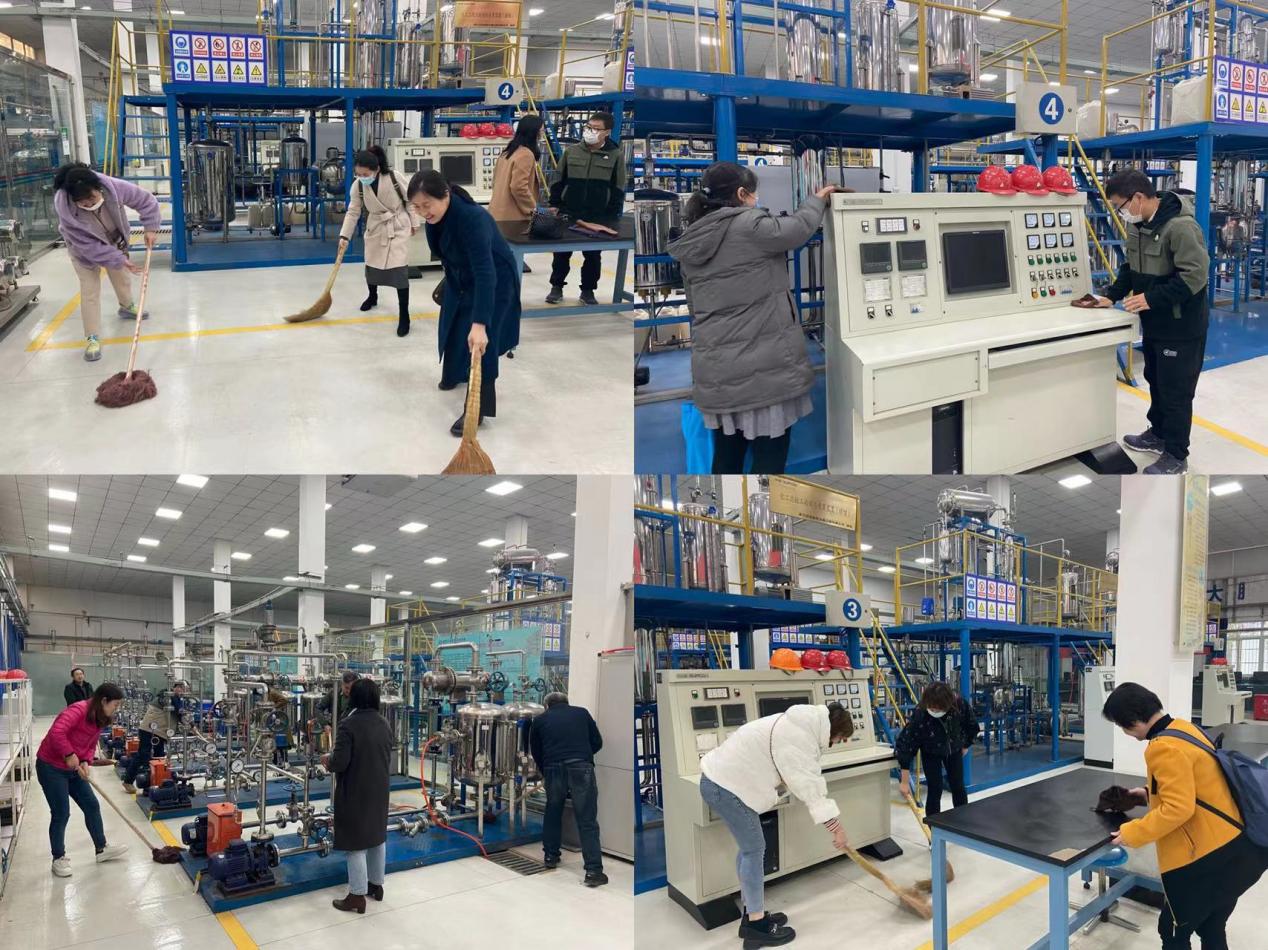 活动中,党员同志们深入到化工训练中心的卫生死角,采用5s管理的方式对实训基地进行全方面的清理。大家分工协作、密切配合、主动积极,用劳动让整个实训基地焕然一新,为我院师生营造整洁、舒适、文明的学习环境。