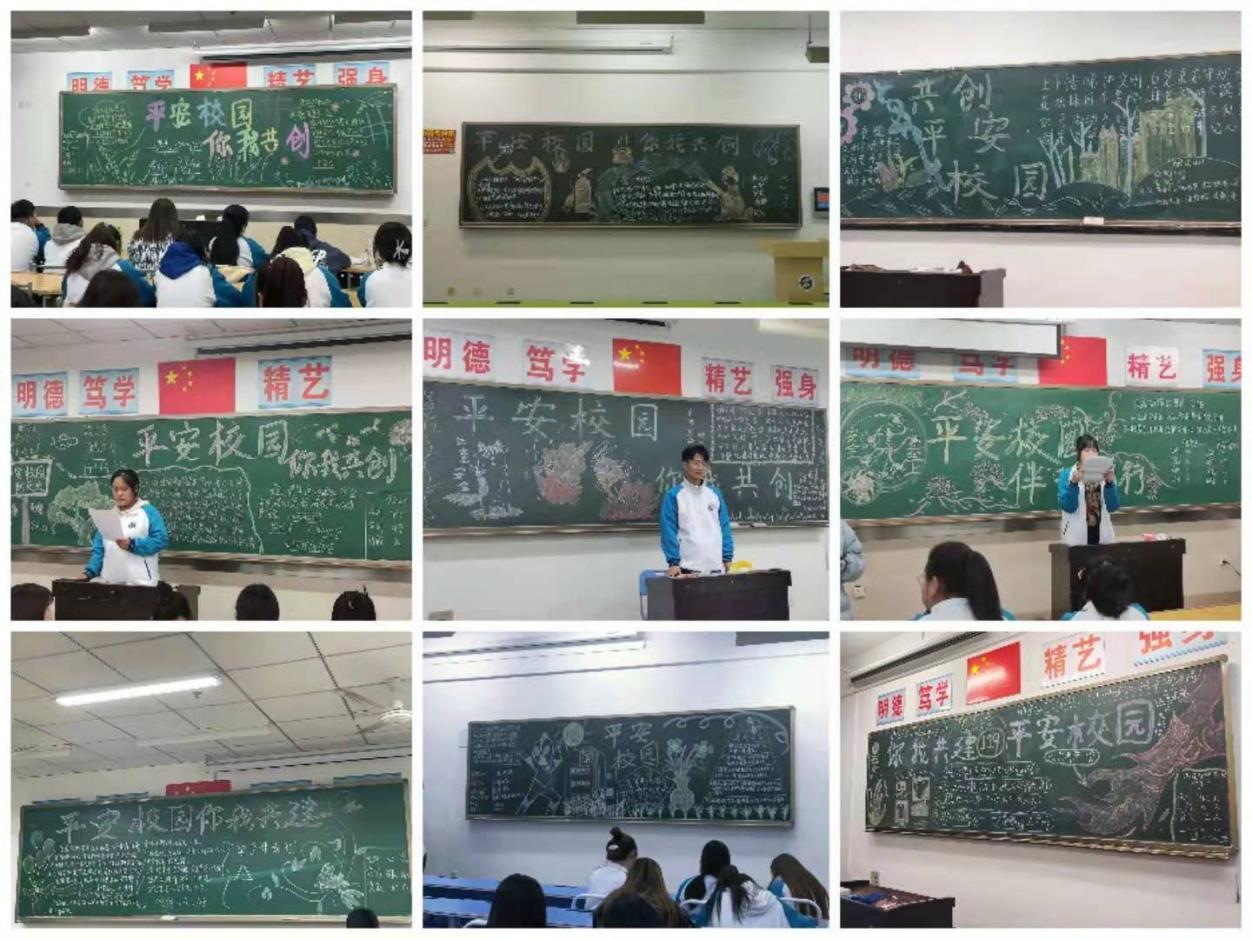 活动中,首先各班团支部组织学习“青年大学习”网上主题团课,观看了《校园宿舍消防安全》、《室友冲突——怎样理解矛盾》、《远离校园网贷》等视频,教育引导青年团员增强安全意识。其次,创新活动形式,建立线上试题库,组织青年团员进行线上平安校园答题,普及平安校园创建知识,强化校园安全教育实效。最后各班团支部聚焦“平安校园,你我共创”主题,组织青年团员开展校园文明安全的讨论,并号召青年团员利用课余时间开展以“奉献一点,文明一片”实践活动,形成平安校园创建的浓厚氛围。