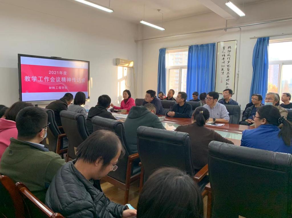 11月17日下午,材料工程学院召开2021年度教学工作会议精神传达会,会议由材料工程学院院长李云主持,全体教师参加了会议。