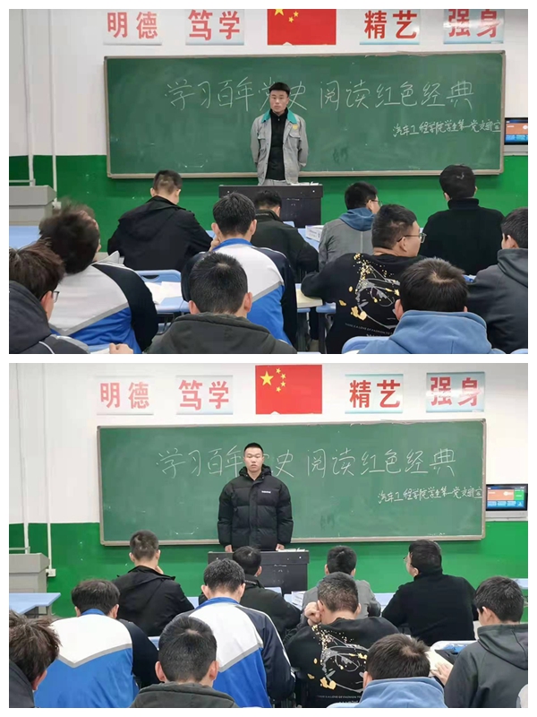为扎实推进党史学习教育,热情讴歌党的光辉业绩,营造浓郁的党史学习教育氛围。11月25日下午,汽车学院学生第一、第二党支部组织开展“学习百年党史、阅读红色经典”主题读书分享会,支部全体师生党员参加,活动由宣传委员杨海莹主持。