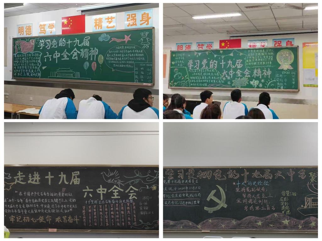 本次主题团日活动形式多样,首先各班级团支部,紧扣“学习十九届六中全会精神”的主题,精心布置了自习教室、绘制了主题鲜明的黑板报,营造起浓厚的学习氛围;其次组织学生集体观看十九届六中全会的相关报道,对有关文件进行了宣读、传达了会议重要精神;最后各团支部组织学生进行交流发言,学生们纷纷结合自己的生活实践,分享了各自关于十九届六中全会精神的学习情况和心得感悟。