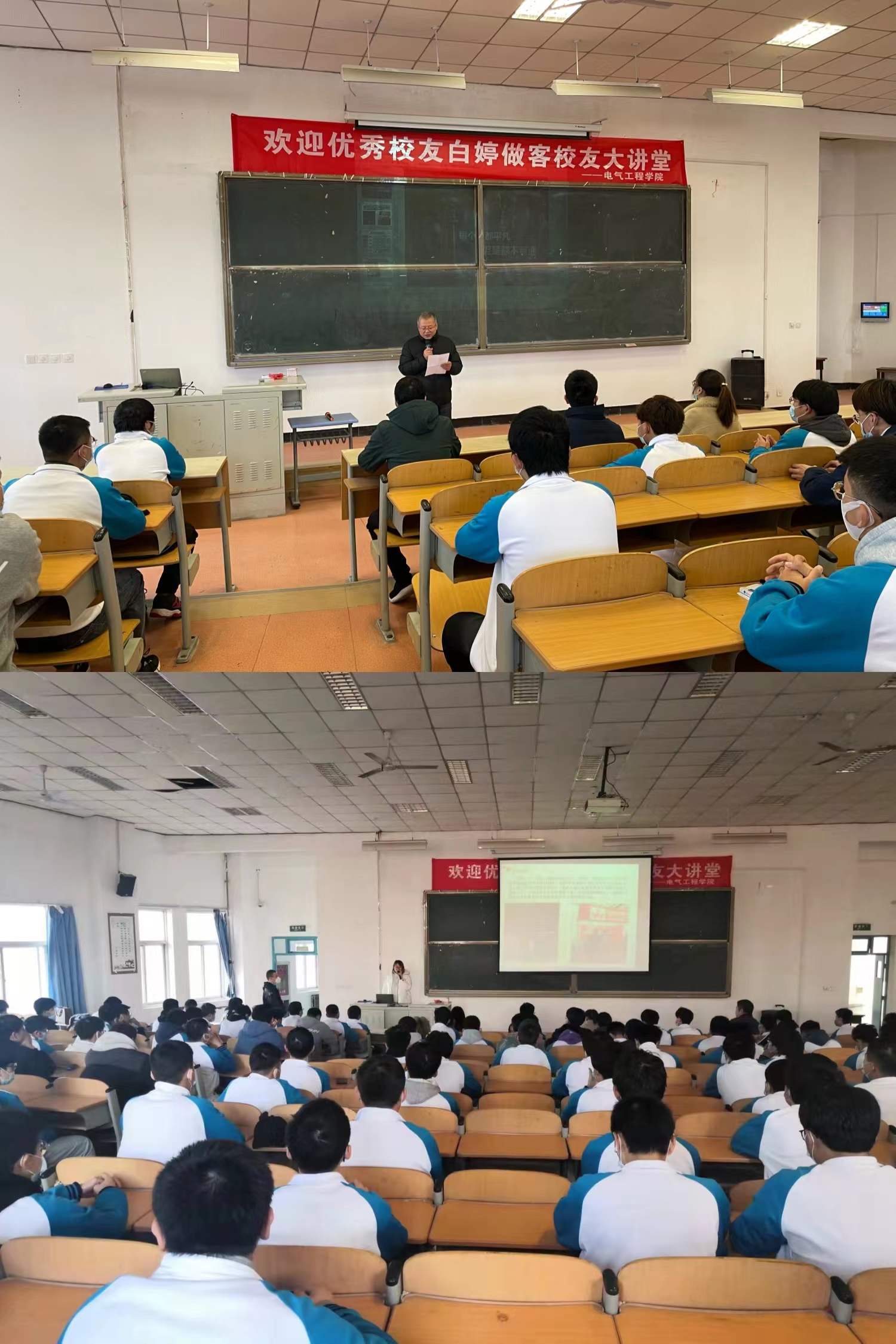 12月14日下午,电气工程学院邀请优秀校友、供用电应用技术专业17届毕业生白婷做客“校友大讲堂”,为学弟学妹们分享“每个人都平凡,但是都不普通”的主题报告。报告会由电气工程学院党总支书记韩伟主持,电气学院200余名师生在崇文西楼301教室聆听了报告。