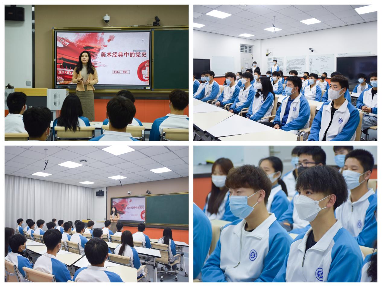 以史为魂,讲好红色故事。本次党课从开辟新天地、建设新中国、迈步新时期、奋进新时代四个篇章入手,利用党史这部最生动、最有说服力的教科书,结合美术经典讲述百年光辉历程,上好党史必修课。通过“艺术沉浸课堂”引导学生走进党史深处,切身感受到共产党人百年不变的初心使命。课后,学生党员们纷纷争做讲述人,积极主动参与党史故事传播,表示要为红色校园贡献自己的力量。