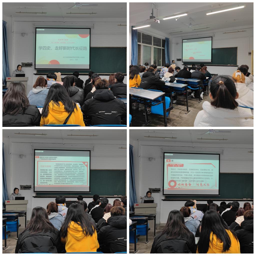 为扎实推进党史学习教育,从党的百年伟大奋斗历程中汲取继续前进的智慧和力量,进一步引导学生坚定理想信念,牢记初心使命,12月20日晚,化纺服学院学生第一党支部在笃学楼B101教室,开展了“学四史,走好新时代长征路”支部书记讲党课活动。本次党课由学生第一党支部书记闫琼主持,部分积极分子及发展对象参加。