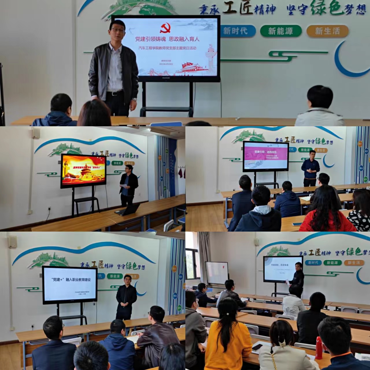 4月20日下午,汽车学院在精艺楼303教室举行了“党建引领铸魂 思政融入育人”主题党日暨课程思政说课交流活动。学院全体教职工参加,活动由教师党支部书记许冀阳主持。