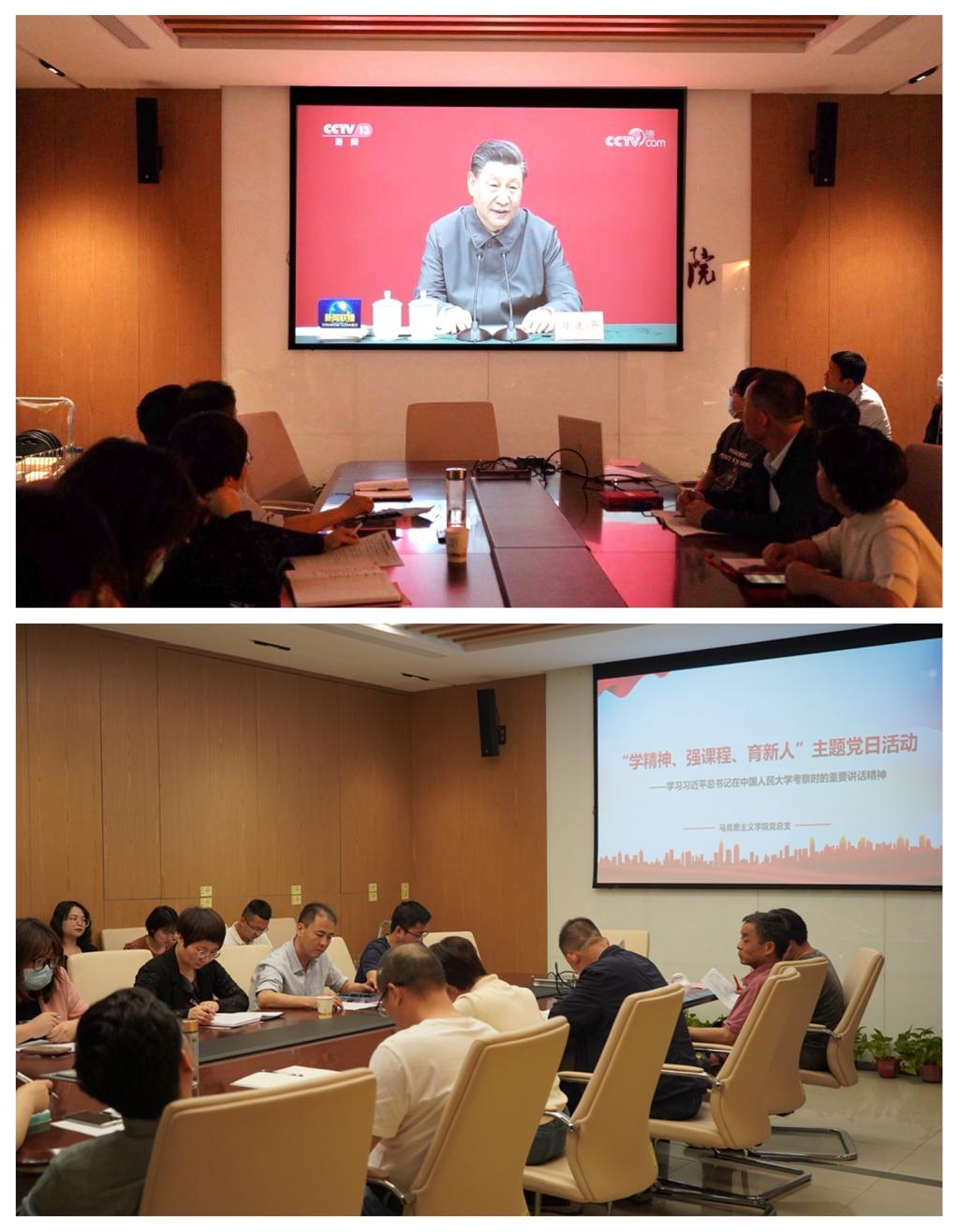 首先,全体与会党员认真观看了习近平总书记4月25日在中国人民大学考察及讲话的视频,随后,广大党员围绕落实讲话精神进行了交流探讨。大家认为,作为高校思政课教师,必须深入贯彻落实习近平总书记重要指示精神,围绕立德树人的根本任务,以学生为中心,创新教学理念、教学方式和教学手段以适应信息时代的发展趋势,不断提升思想政治教育亲和力和针对性,努力让思政课成为有高度、有深度、有厚度、有温度的精彩课程。