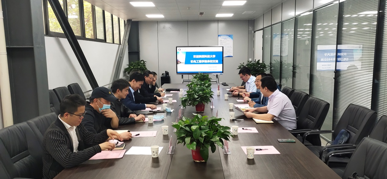 最后,双方就智能制造平台建设、智能制造教学资源建设、智能制造师资队伍建设等问题进行了充分交流并交换了意见。陕西科技大学机电工程学院夏祥林书记表示,我校的智能制造平台建设经验丰富,建设成效显著,可为其相关平台的建设提供有效参考,同时表达了双方在项目合作、人才培养等方面加强合作的美好愿景。