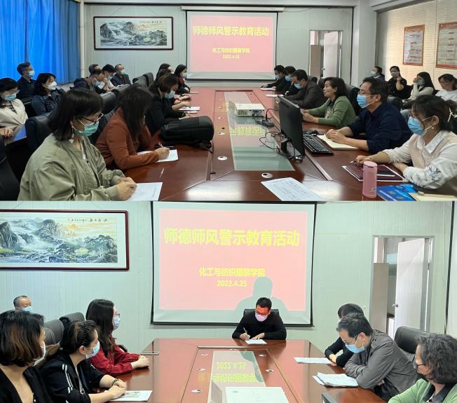 为认真落实《教育部关于建立健全高校师德建设长效机制的意见》《中共中央国务院关于全面深化新时代教师队伍建设改革的意见》《新时代高校教师职业行为十项准则》等文件精神,更好地履行教师职业道德,树立高尚师德形象,4月25日下午,化工与纺织服装学院在崇文楼811会议室召开师德师风警示教育暨新进教师签订《师德师风承诺书》会议,会议由化纺服学院党总支书记贾格维主持,学院全体教职工参会。