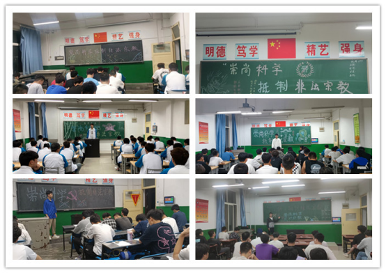 为落实《互联网宗教信息服务管理办法》要求,增强学生识别非法宗教,抵制非法宗教的能力,进一步净化校园文化,构建和谐校园,让学校成为传播科学文明的阵地。5月16日晚自习期间,机械工程学院在各班晚自习教室组织开展“崇尚科学 抵制非法宗教”主题班会。