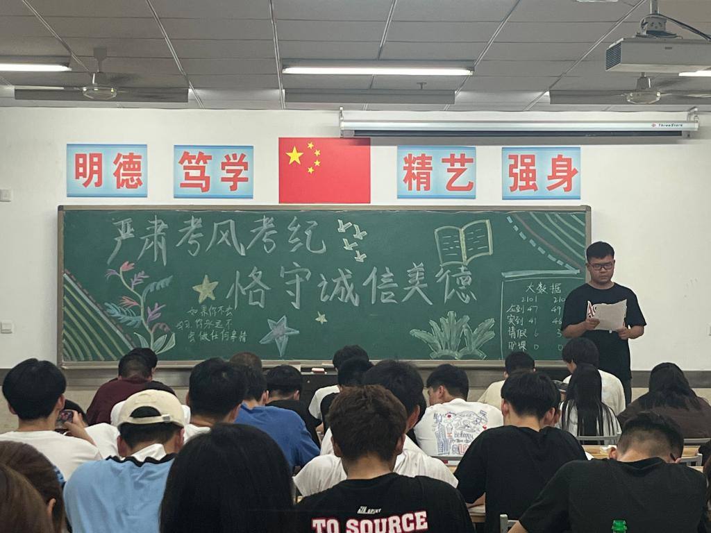 为严肃考风考纪,落实学校关于加强学风建设的要求,培养学生诚实守信的优良品德,树立正确的价值观,2022年6月27日,信息学院学院团总支、党小组学生干部组成的“信息学院新时代大学生宣讲团”在晚自习期间在学院各班召开“严肃考风考纪,恪守诚信美德”主题宣讲会。