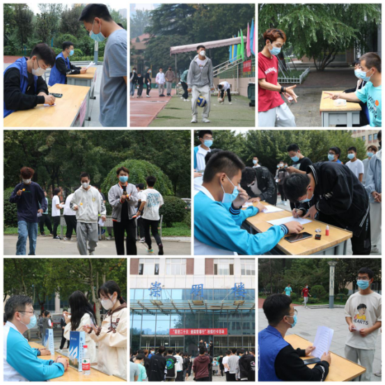 活动中,同学们严格遵守疫情防控要求,佩戴口罩、分时段、分批次先后进行闯关打卡。活动在渭城校区进行,校园内共设置六处打卡点,每处打卡点对应一项活动,分别为五福临门、擂台猜拳、国史党史、脚踏实地、国学经典、数学人生。参赛人员到达指定打卡地点完成挑战后,由各打卡点裁判为同学们盖章证明,最后凭借登记表中的打卡情况和完成时间来评定。在活动中记忆党史,在运动中收获智慧,在美景中放松身心,在竞技中逐渐成长,最终共计300余名同学顺利地完成了闯关任务。