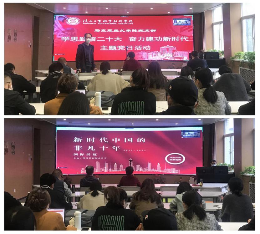 为深入学习贯彻党的二十大精神,10月26日下午,马克思主义学院党总支采取线上、线下相结合的方式,在VR智慧思政实训中心举行了“学思践悟二十大 奋力建功新时代”主题党日活动。马院党支部书记王辉主持,总支副书记王艳及其他全体党员参加了活动。