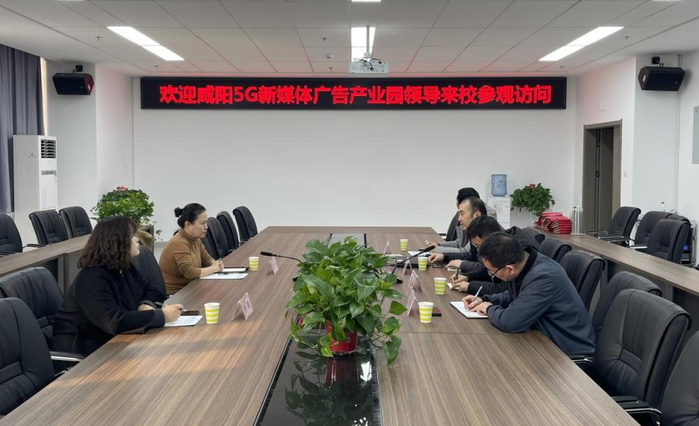 12月7日,咸阳5G新媒体广告产业园张芳总经理一行到访我校商贸与流通学院,学院领导班子成员侯涛、张光、杨涛、成志平在崇理楼B603会议室接待来宾一行并座谈,双方就就校企合作、学生实习实训、就业对接和新媒体产业发展等事项开展访企拓岗合作洽谈。
