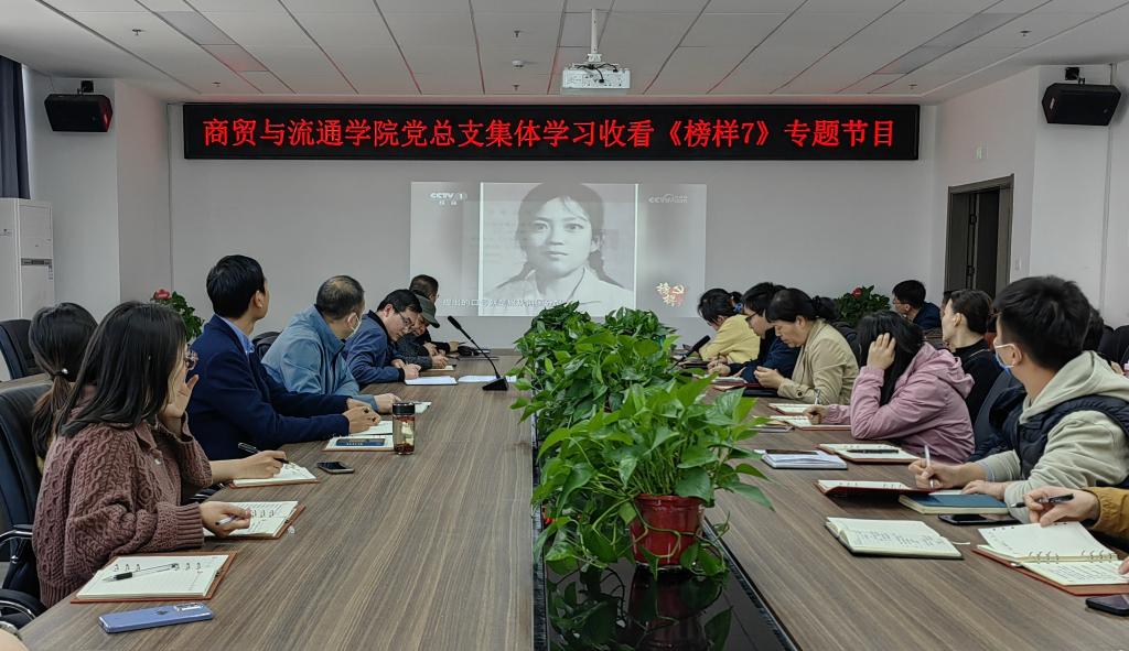 为深入学习贯彻习近平新时代中国特色社会主义思想和党的二十大精神,充分发挥先进典型示范引领作用,3月27日下午,商贸与流通学院党总支组织全体教师党员在崇理楼B604会议室集体学习收看《榜样7》专题节目。