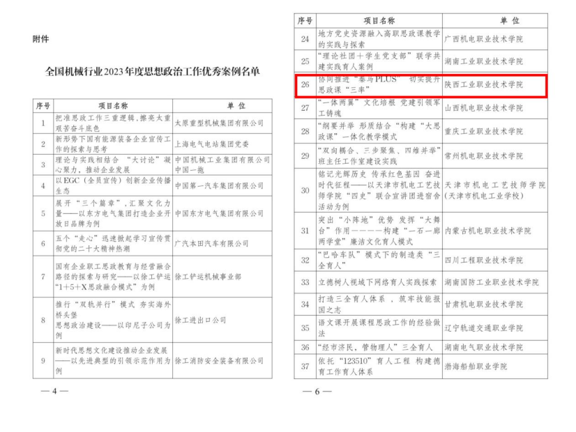 我校思想政治工作案例获评2023年度全国机械行业思想政治工作优秀案例